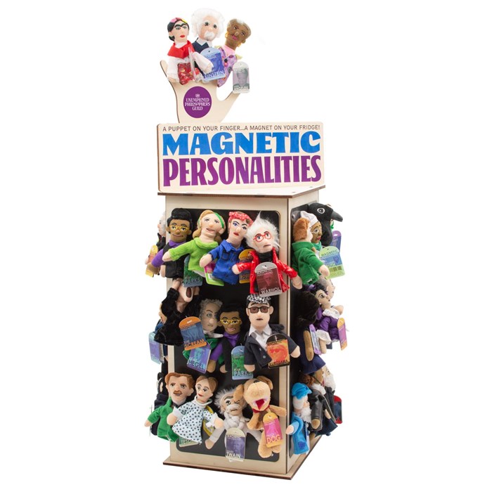 Rough Rider, author, conservationist, president, and now a finger puppet! On your finger, he's a puppet; on your fridge, he's a magnet; in your puppet collection he's a true American hero! A Magnetic Personality is a puppet on your finger and a magnet on your fridge or locker. Each design is a detailed, original plush portrait with a mini bio tag of essential dates, key facts, and a quotable quote. Every Magnetic Personality captures a remarkable individual – because they’re characters with real character! (Approx. 4” / 10 cm tall)
